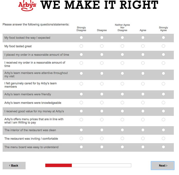 Customers or visitors who participated at this www.arbyswemakeitright.com survey However, those who participated in the survey they only needed to take the following steps.