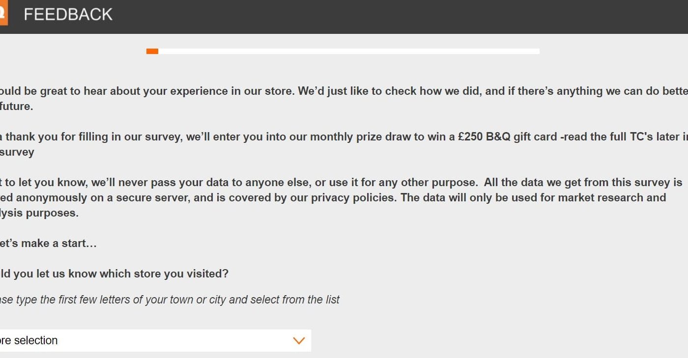 Fill the B&Q Survey with loyalty and you will be eligible to enter into sweepstakes to get the prize.