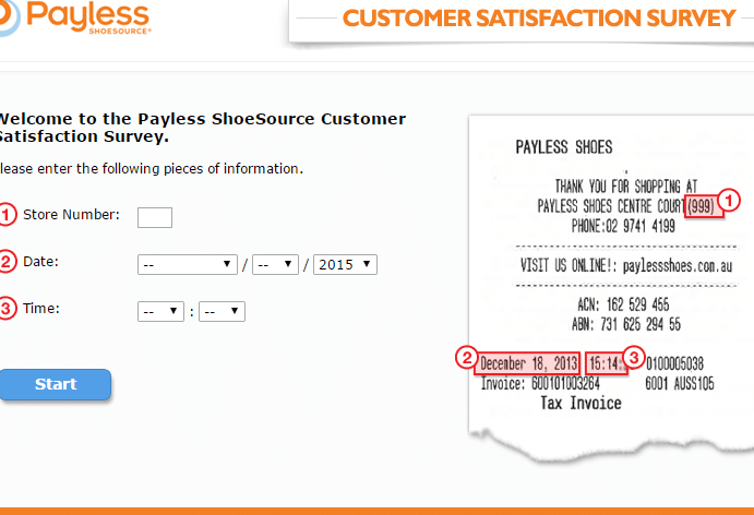 Once you visit any Payless shops and purchase something, you’ll be handed a receipt with all the details you may need when choosing the Survey. Always keep your receipt safe after purchasing anything.