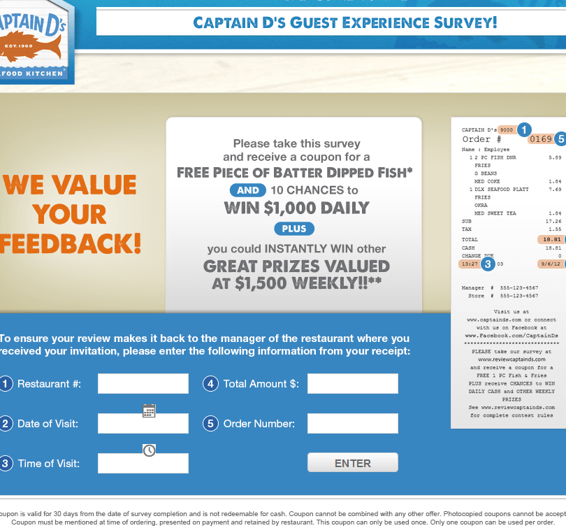 ReviewCaptainDs.com – Captain D’s Survey ($1000 Cash)