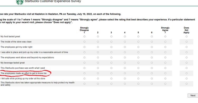 - You will now be requested to give a rating Starbucks Customer Service for your recent visit.