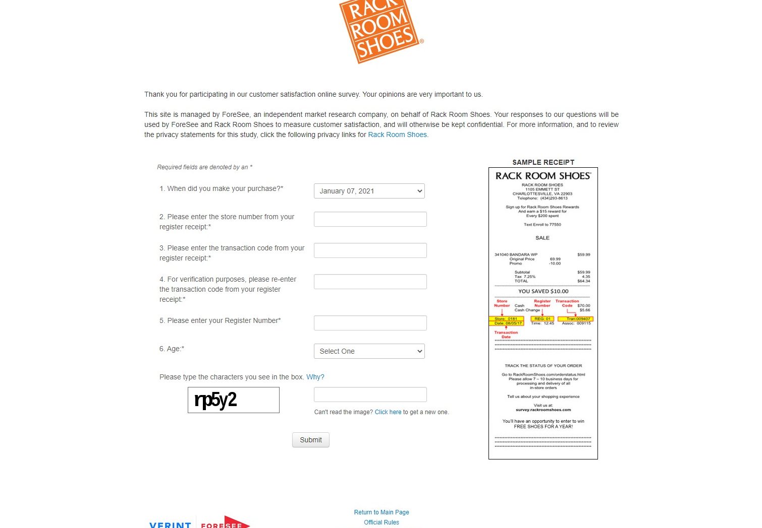 Follow the steps and complete the steps and complete your Rack Room Shoes questionnaire. See the details for your Rack Room Shoes Feedback survey here: