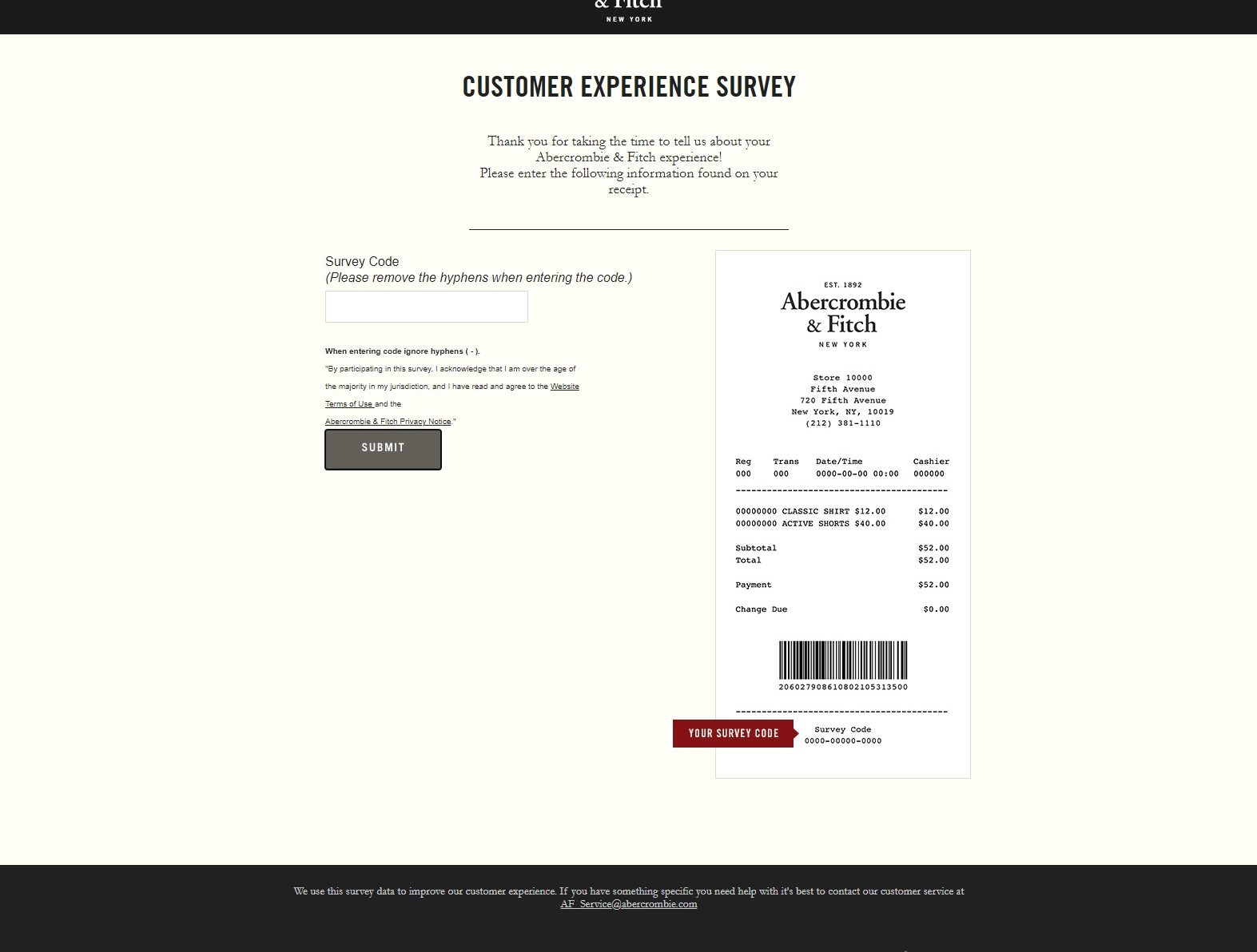 • The 20-digit survey code from your most recent KFC receipt
