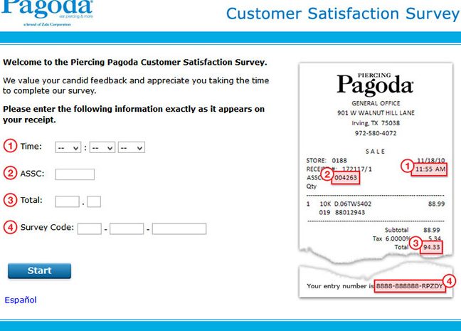 Requirements for www.pagodasurvey.com To Fill Piercing Pagoda Survey